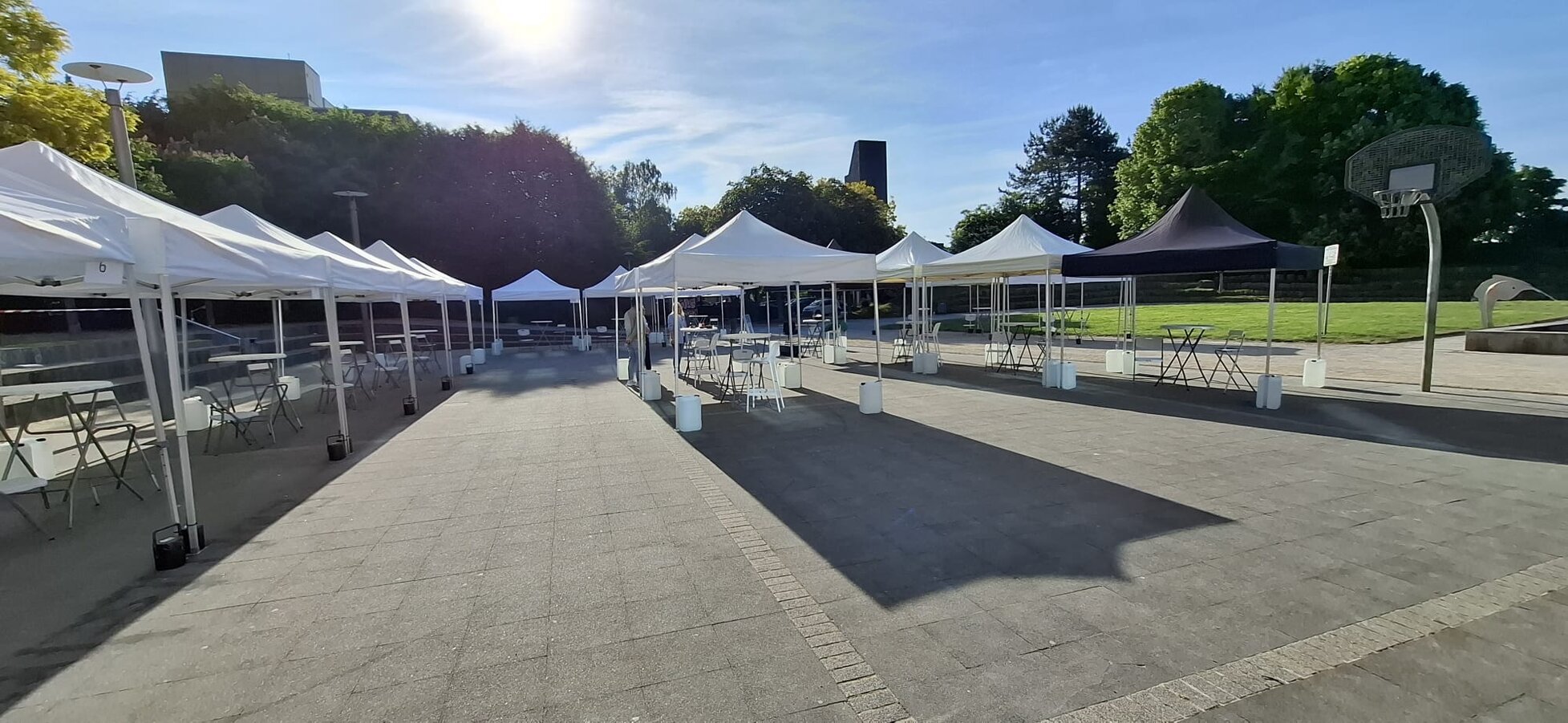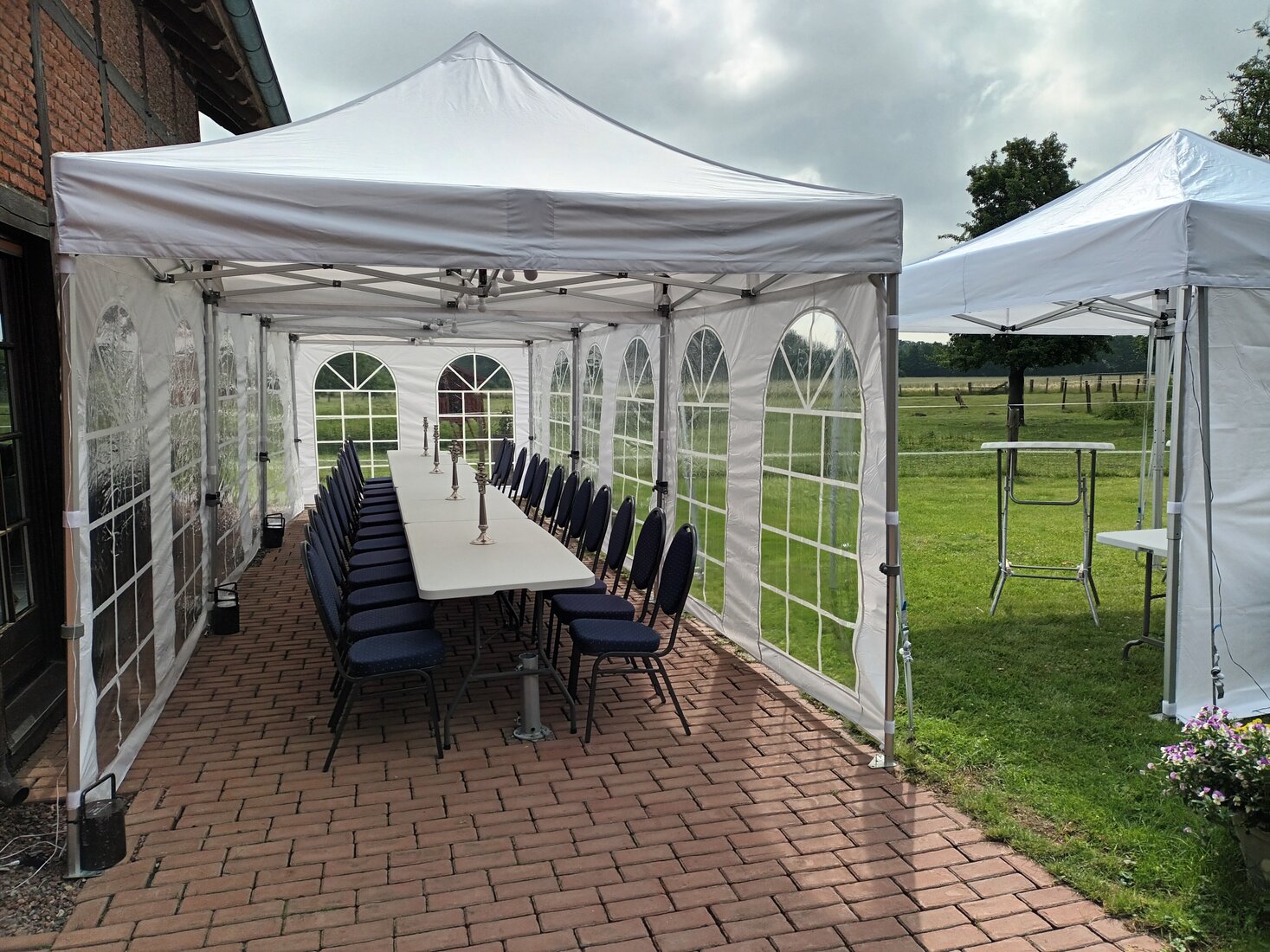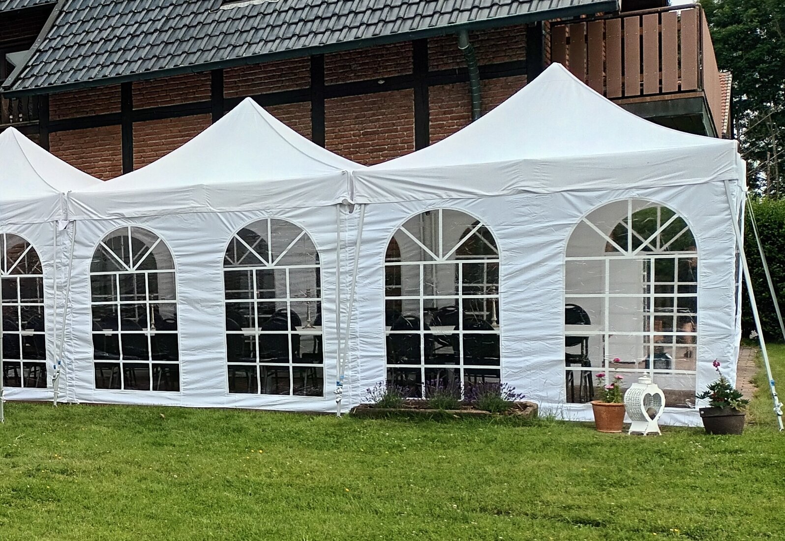 Wenn mehrere Pavillons aneinander gestellt werden sollen, verbinden wir die Pavillons untereinander mit Verbindungsrinnen.