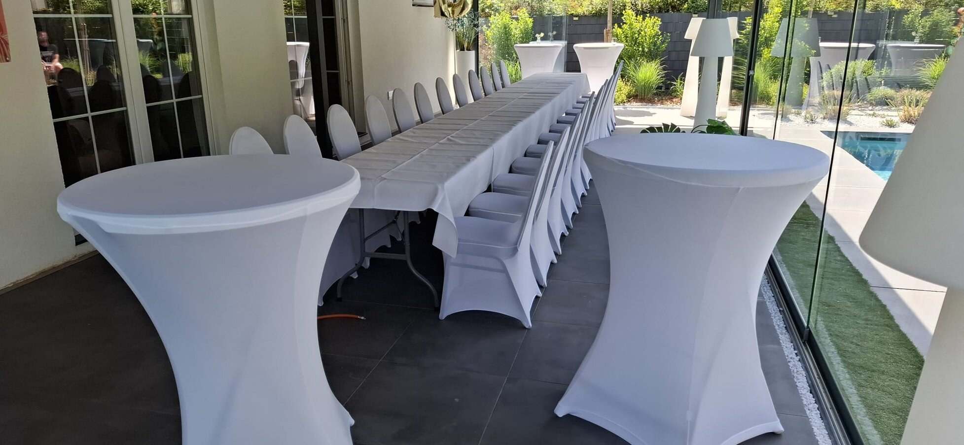 Hussen werden ausschließlich nur in Verbindung bei uns gebuchter Stehtische oder Stühle vermietet!