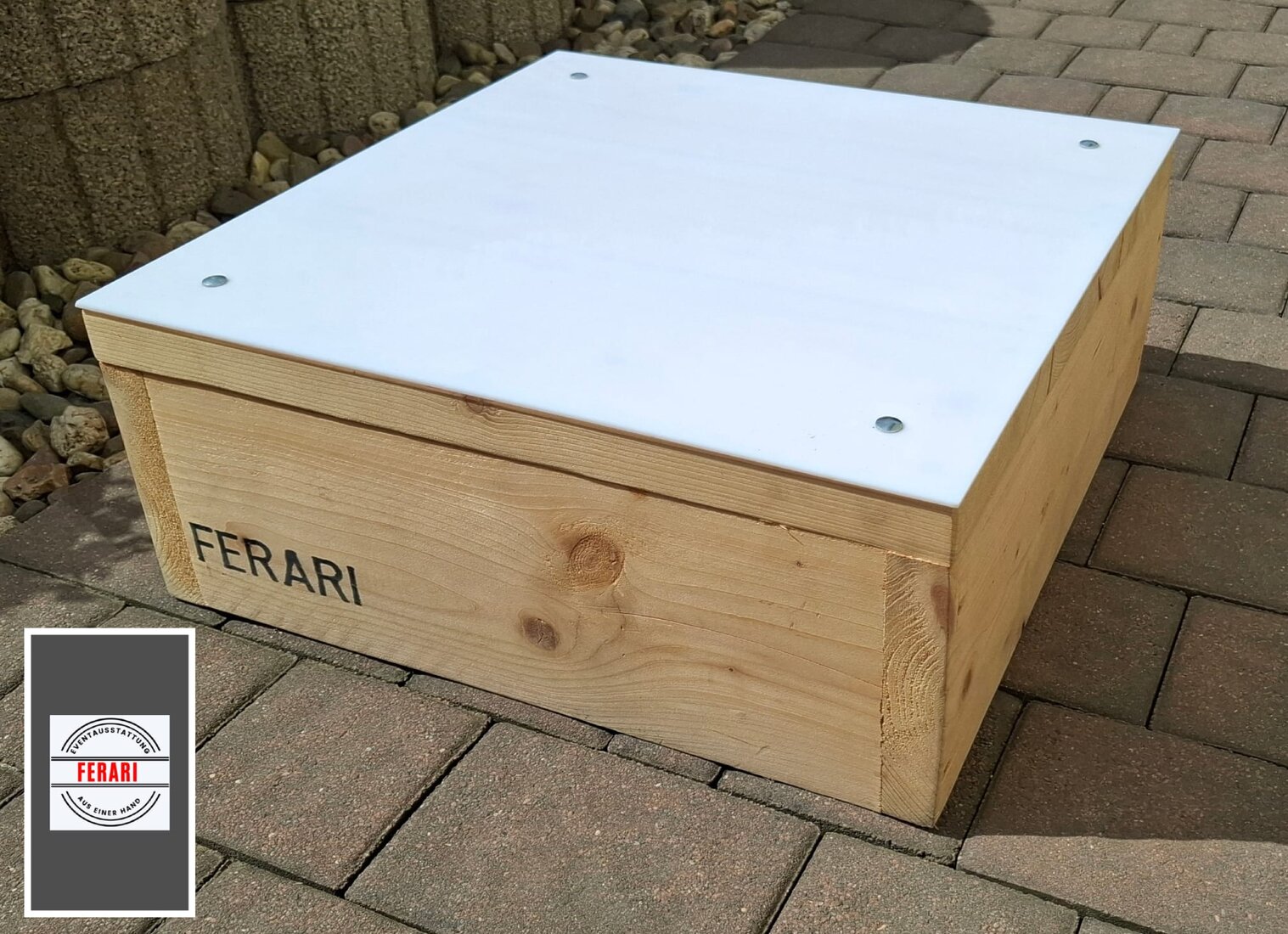 120 cm lang, 40 cm tief, 43,5 cm Sitzhöhe