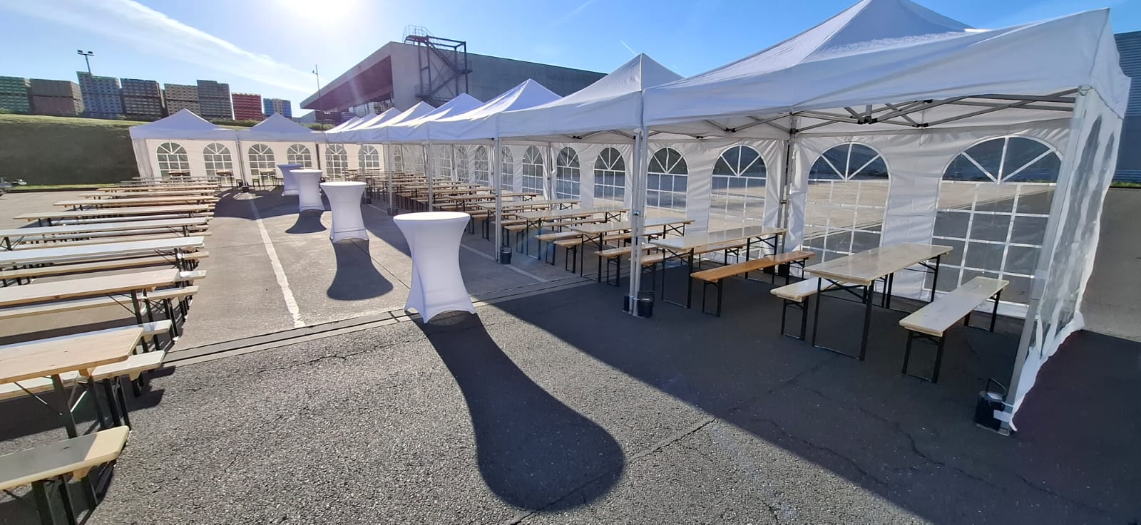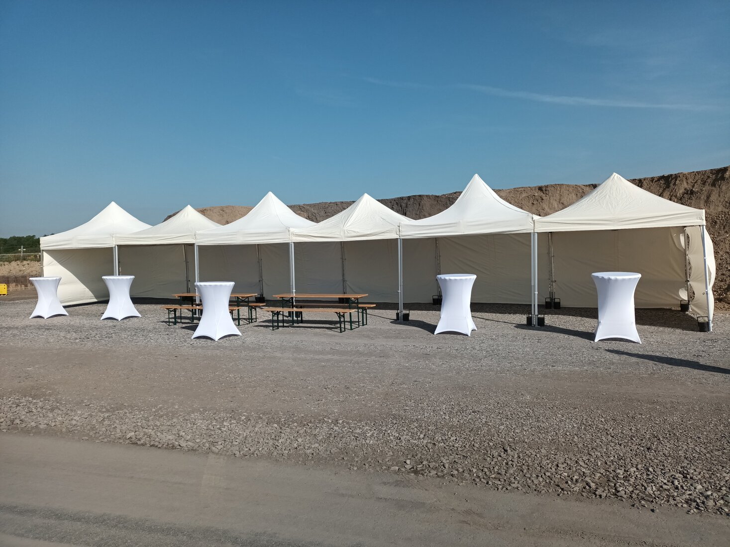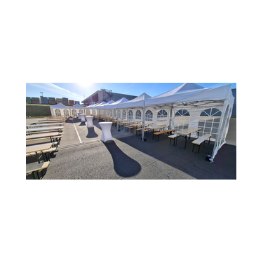 Wenn mehrere Pavillons aneinander gestellt werden sollen, verbinden wir die Pavillons untereinander mit Verbindungsrinnen.